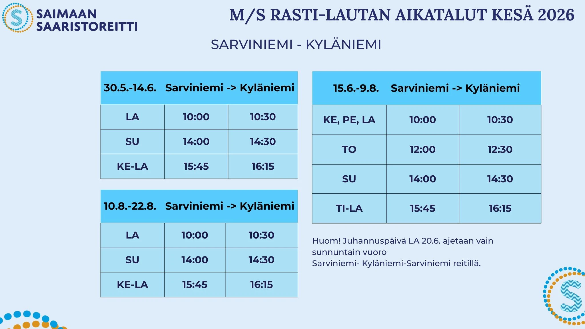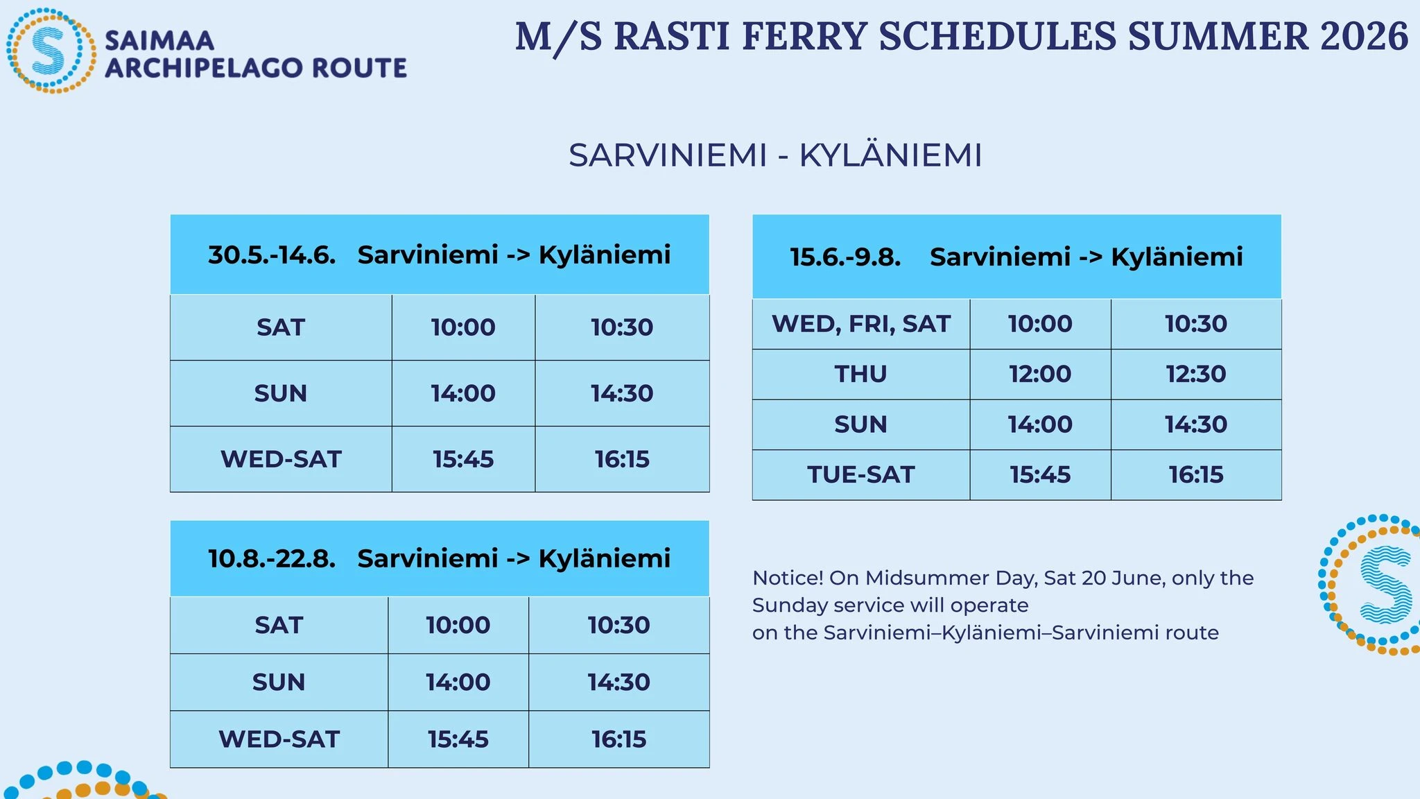 Ferry crossing on the Saimaa Archipelago route in clockwise direction (from west to east).