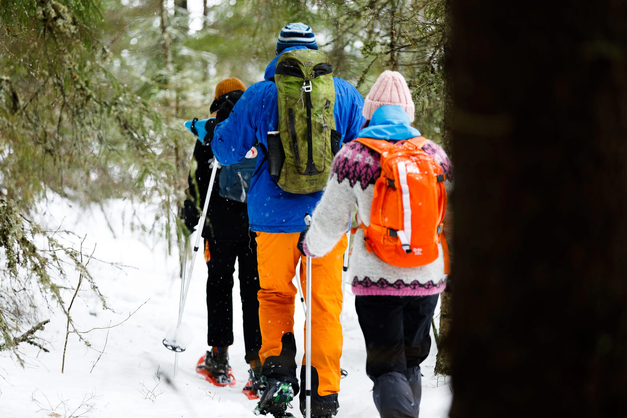 Go and explore the Finnish nature during winter time. With our snowshoes you can easily climb the steepest uphills thank to the spikes on the bottom of the snow shoes.